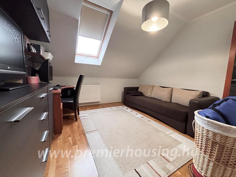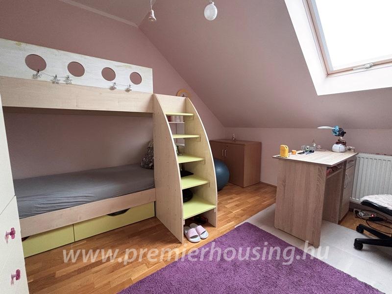 Az ingatlan nyugati részén, a nappaliból pedig egy zárt, saját kert biztosítja a nyugodt kikapcsolódást, családi programokat vagy a gyerekek biztonságos játékát.