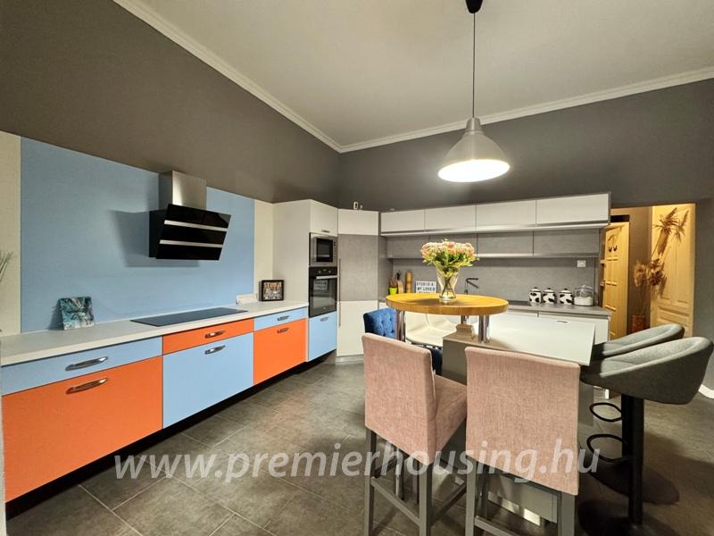 Az évek során széleskörű átalakításon és felújításon esett át. Alapterülete 120 m2, egy tágas előtérből, összesen 4 szobából, konyhából, illetve összesen 3 vizes blokkból áll. A hideg és meleg burkolatok épek, a nyílászárók fából készültek, melyeket renováltak. A víz-és villanyvezeték hálózat teljeskörű felújításon esett át. Tartozik hozzá egy tároló is.