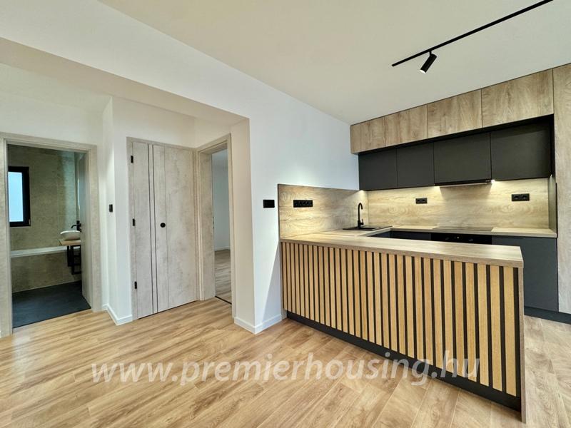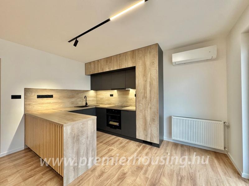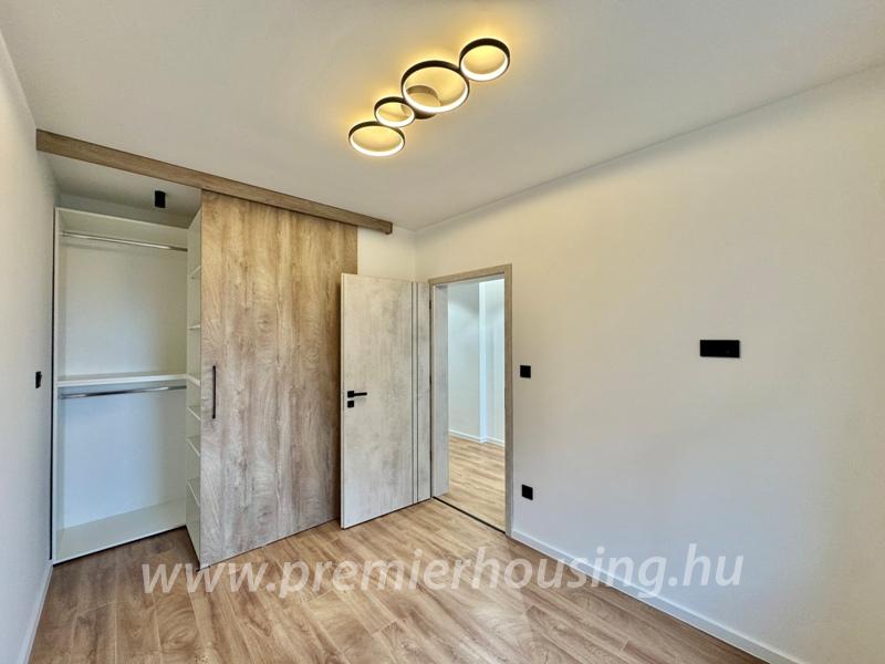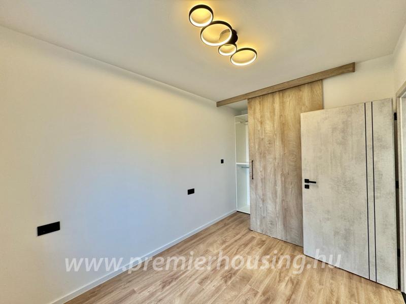 A komfortot hűtő-fűtő klíma, háromrétegű üvegezéssel ellátott nyílászárók, távirányítható motoros redőnyök és szúnyoghálók biztosítják. A burkolatok magas minőséget képviselnek, a fürdőszoba megjelenése karakteres és modern, a mellékhelyiség külön helyiségben található. A gondosan megtervezett világítástechnika tovább erősíti a lakás prémium jellegét.