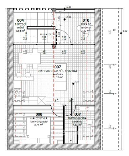 VisszaA hátsó telek 410,19 nm melyen egy 2 szintes társasház helyezkedik el saját gépkocsibeállóval. Ezen emeleti lakás paraméterei: a lakórész nettó 34,62 nm, a terasz 5,5 nm.